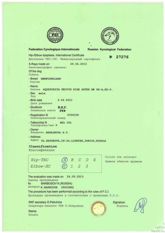 Pedigree numberРКФ 3096038