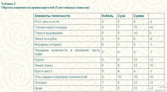 Перечень достоинств и дефектов составлен на основе простой шкалы. Установленные оценки повышаются от 0 до 10, оценка "удовлетворительно" соответствует примерно 6. Чтобы вязка могла дать хорошие результаты, 50% оценок должны по меньшей мере достигать уровня "удовлетворительно", с учетом того, что отрицательные оценки (если они есть) не должны превышать 30%. Кроме того, они строгим образом не должны приходиться на один и тот же раздел строения тела, например череп-морда, зубы или спина-круп, задние конечности. В таком случае производится смена партнёров.